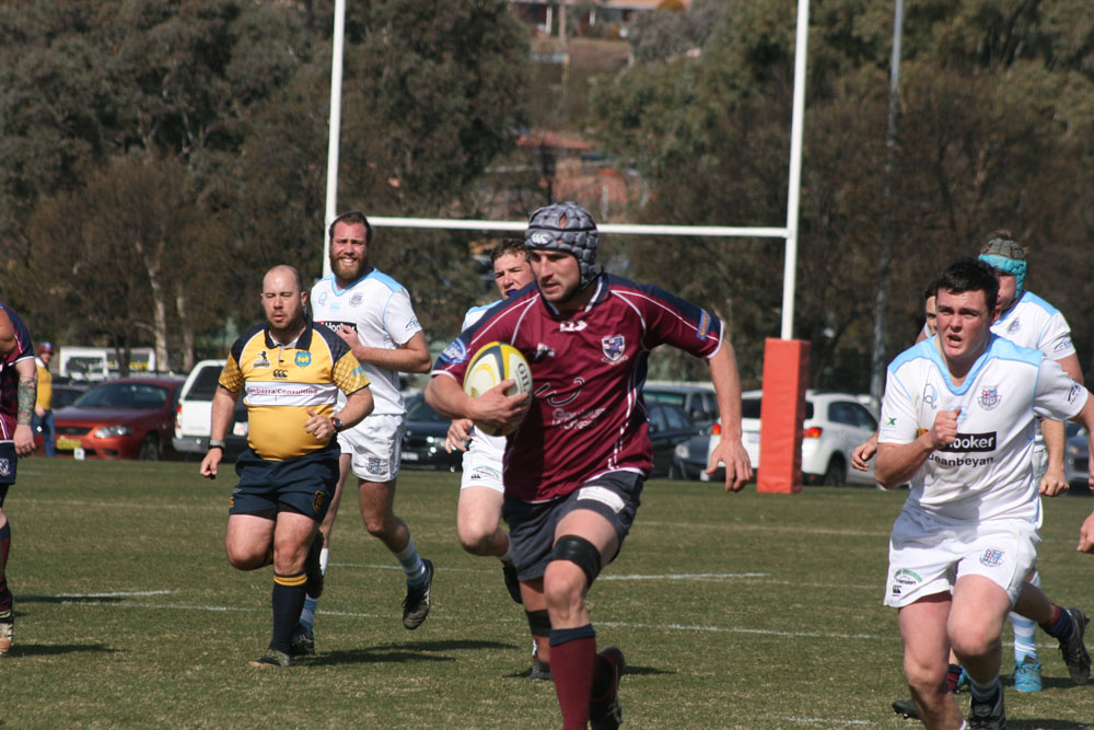 Quick Goulburn phases, and Queanbeyan’s bulkier but less mobile pack saw them stretched thin at the sides. The Reds exploited that, although their first try, to Brad Clements, was smack bang up the guts.