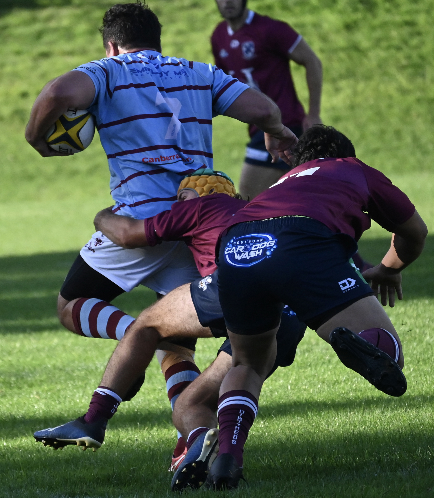 The first grade match began with an inauspicious start with no ACT appointed referee on hand, but Dirty Red player and former first grade coach Justin “Ricky Bobby” Benn agreed to take the whistle in a performance that was short on stoppages and big on entertaining, flowing rugby.