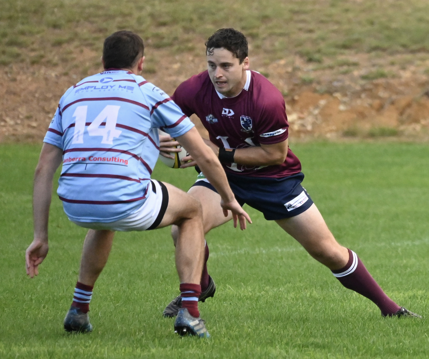 The first grade match began with an inauspicious start with no ACT appointed referee on hand, but Dirty Red player and former first grade coach Justin “Ricky Bobby” Benn agreed to take the whistle in a performance that was short on stoppages and big on entertaining, flowing rugby.