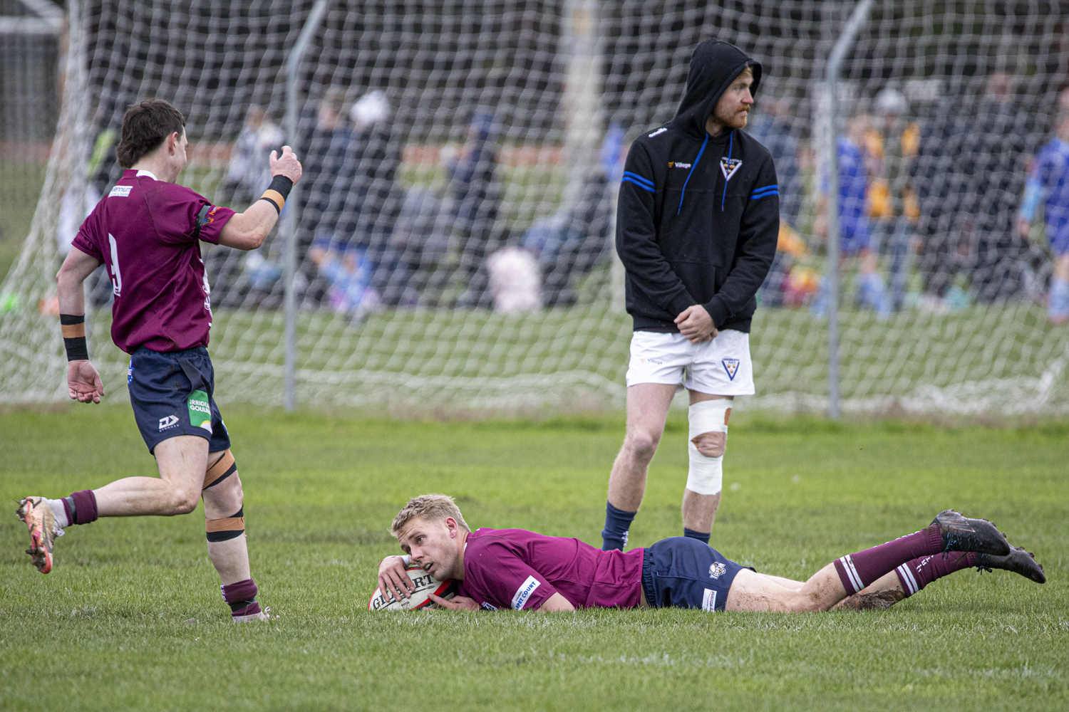 With one minute left in the half, Eric Brown crossed the line for Goulburn and, as in the earlier second-grade match, scores were level at the break.